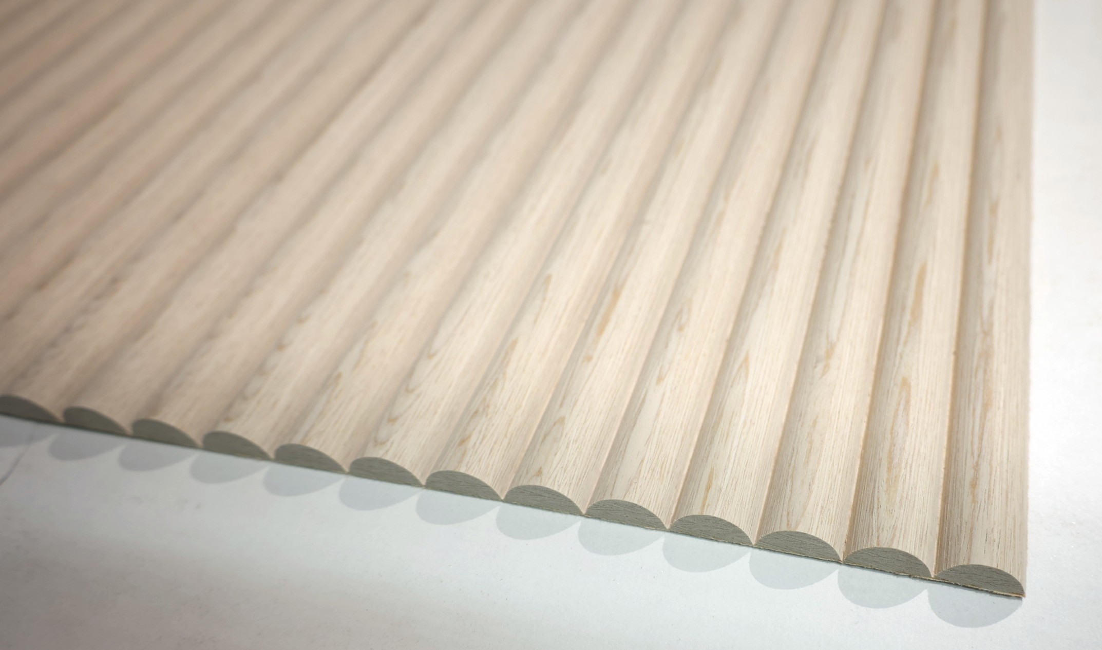 Un motif sculpté en 2D dans l'épaisseur du placage. Une multitude de finitions possibles tout en gardant l'aspect bois. L'assemblage des placages est glissé.