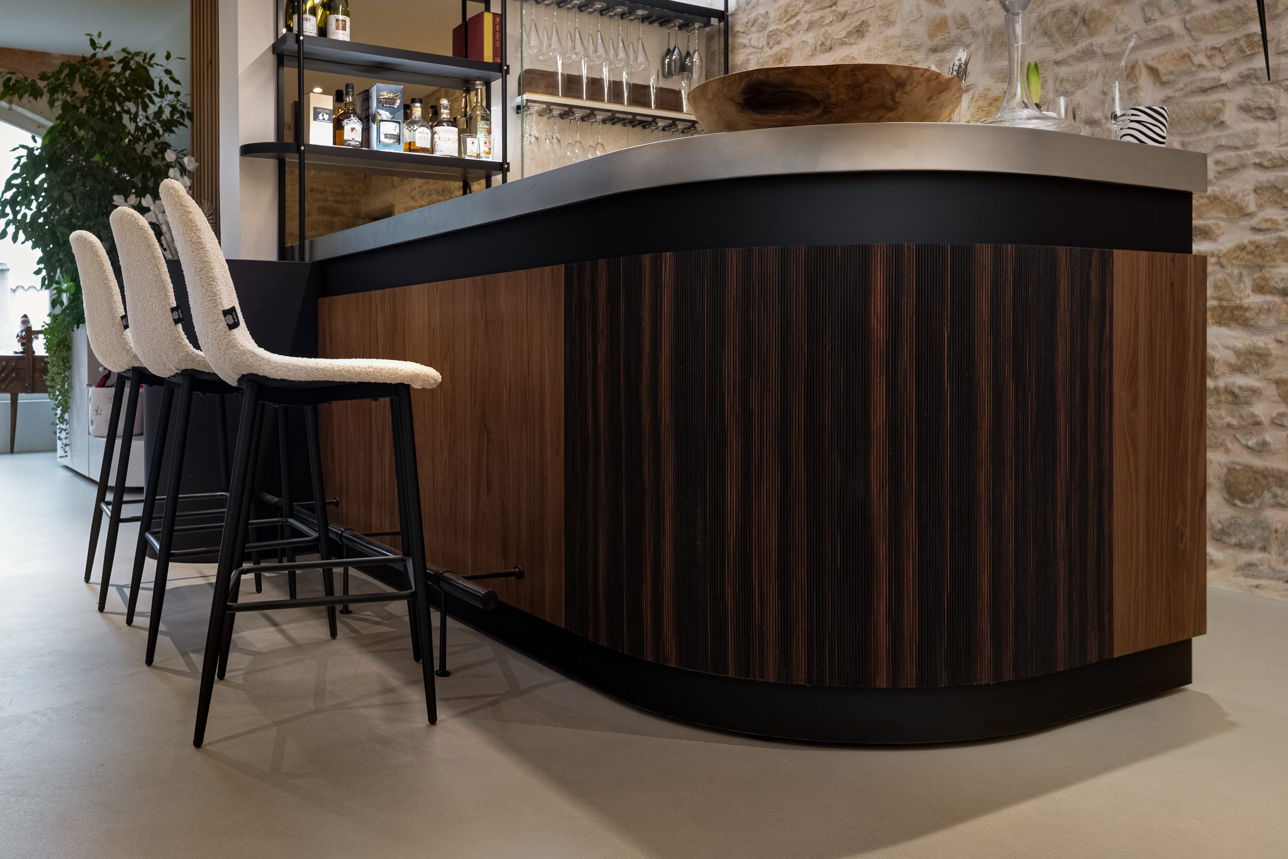 L’ébène, avec ses teintes profondes et son veinage intense, donne du style au mobilier de ce salon.